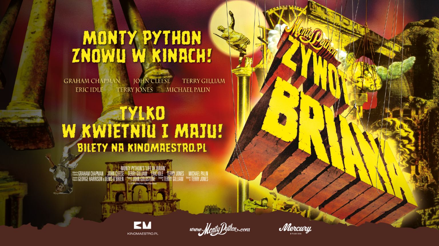 Kinowy seans „Żywota Briana” po latach to wyjątkowa okazja, by na wielkim ekranie zobaczyć legendarne już spory między Frontem Wyzwolenia Judei a Judejskim Frontem Ludowym (pamiętajcie, to dwie zupełnie różne frakcje!). Odwiedzimy też pałac Poncjusza Piłata, który ma drobną wadę wymowy i być może zechce: „uwolnić Błajana”, jeśli go ładnie o to poprosicie. Warto też zadać sobie fundamentalne pytanie: „Co takiego zrobili dla nas Rzymianie?”.