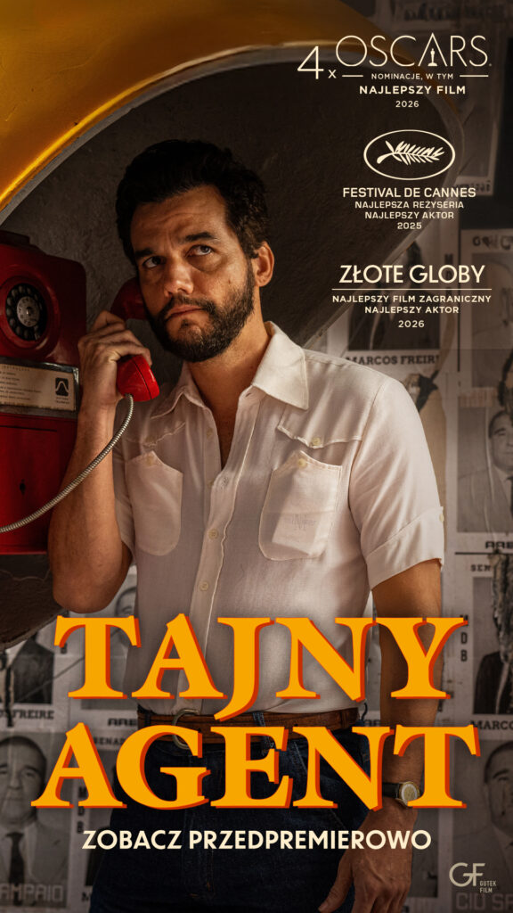 Za rolę ostatniego sprawiedliwego w zepsutym do szpiku kości kraju Wagner Moura zdobył Złoty Glob, nagrodę w Cannes, ma też szansę na pierwszego w karierze Oscara. Znany z serialu „Narcos”, „Elitarnych”, czy „Civil War”, aktor porusza się w labiryncie brudnych sekretów z lekkością i wdziękiem gwiazd starego Hollywood. „Tajny agent” jest hołdem dla kina Sergio Leone, Martina Scorsese i Francisa Forda Coppoli, do którego nawiązuje skalą i duchem. Mendonça Filho odświeża jednak i reinterpretuje kino gangstersko-szpiegowskie, wychodząc poza klisze i gatunkowe ramy. Widowiskowy, pasjonujący i przenikliwy, odsłania kawał prawdy nie tylko o przeszłości, ale i o naszych czasach