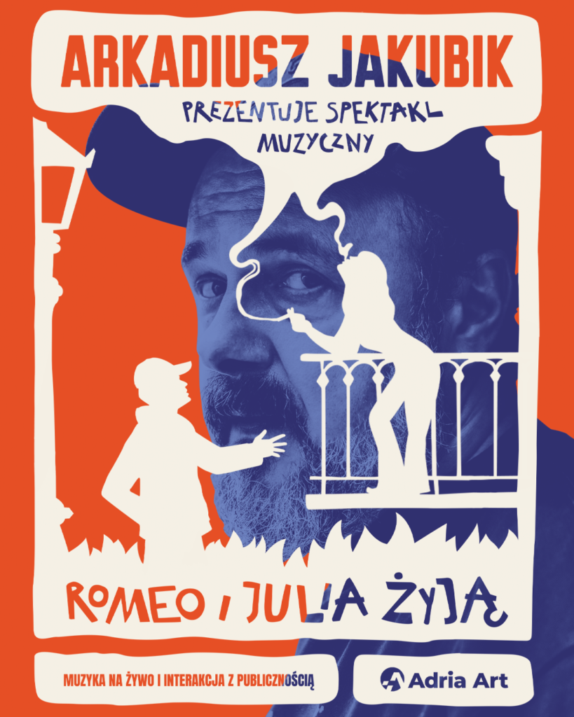 Na albumie „Romeo i Julia żyją” Jakubik prezentuje dziesięć autorskich utworów, które układają się w emocjonalną, niemal serialową narrację. Podczas spektaklu materiał z płyty ożywa w formie inscenizacji: z zespołem na żywo, projekcjami wideo i bezpośrednią interakcją z publicznością. To wydarzenie na pograniczu koncertu, spektaklu teatralnego i filmowej opowieści tworzonej w wyobraźni widza.